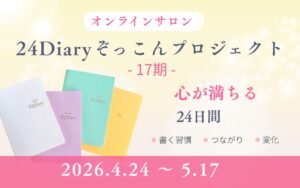 【受付中】 24Diaryの人気企画 オンラインサロン「ぞっこんプロジェクト」17期が4月24日スタート!今回のテーマは 『心が満ちる』24日間。何かと慌ただしいこの時期…一緒に整えていきませんか?書き方の基本的なレクチ […]